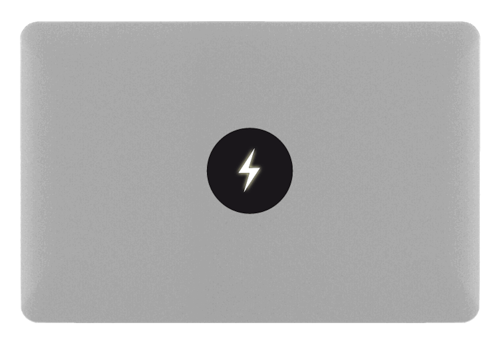 The sticker is placed over the Apple logo, so the lightning flash shines through!